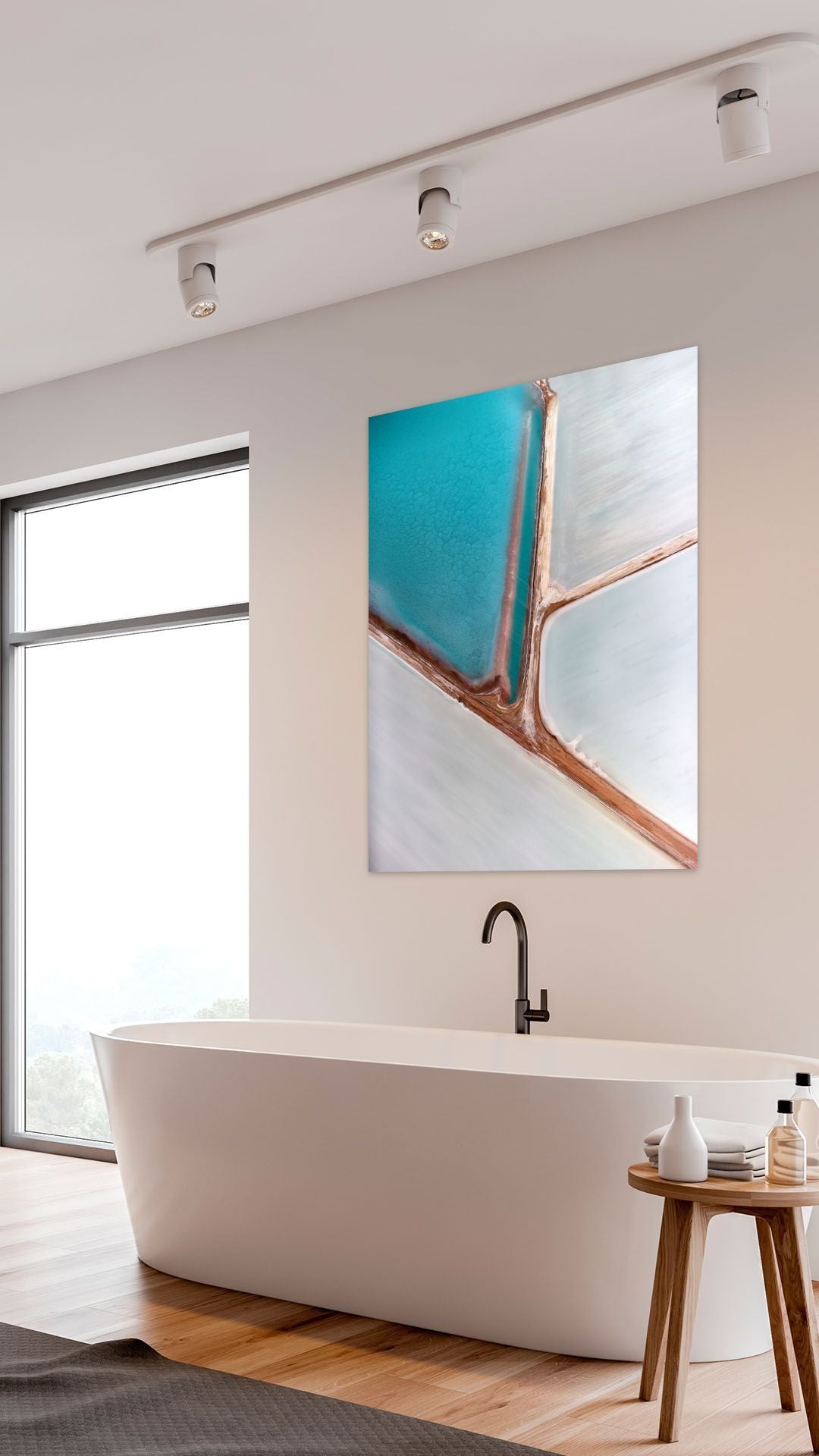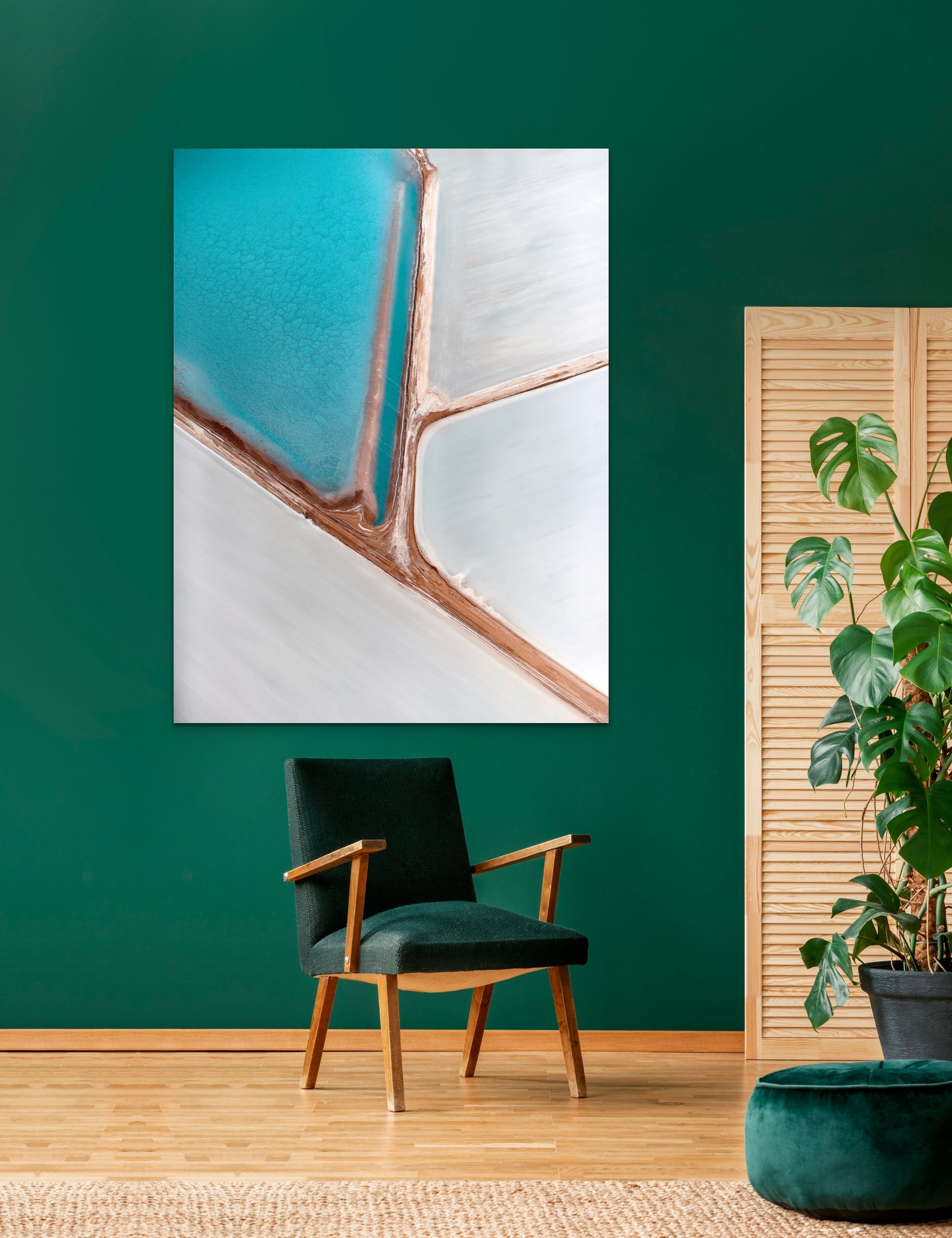 "Abstract imagery is a fantastic art form in itself, let alone finding such brilliantly colored abstract art from high above in the clouds. The salt flats photographed in this image over the salt flats in my homeland of Australia are a stunning display of nature at work."